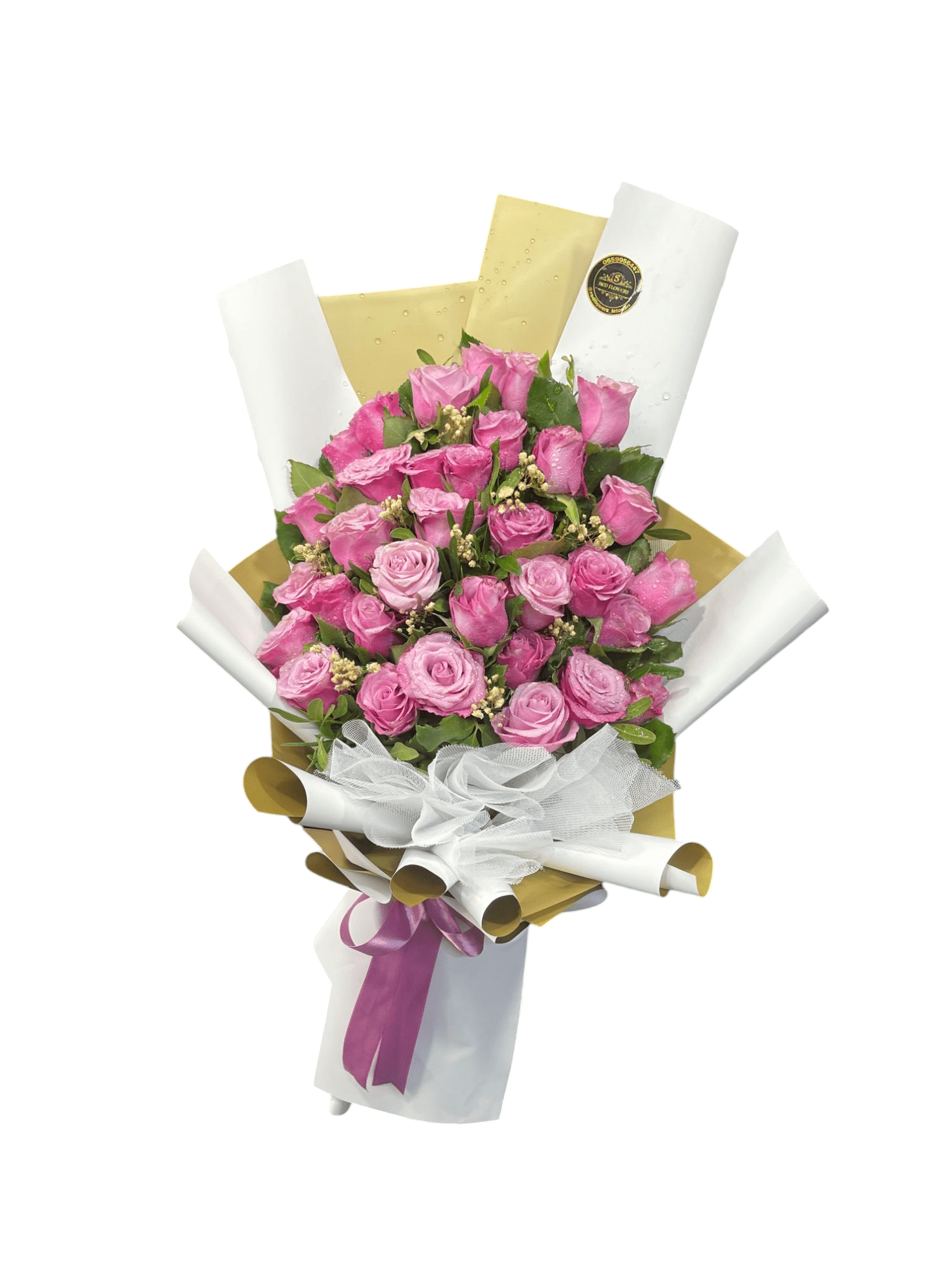 Un bouquet délicat où les roses roses, symboles de tendresse et d’affection, sont entourées de touches subtiles de vert frais. Cette combinaison naturelle évoque la douceur et l’harmonie, apportant une sensation de sérénité et de fraîcheur. Parfait pour exprimer vos sentiments avec élégance ou ajouter une note apaisante à votre intérieur.