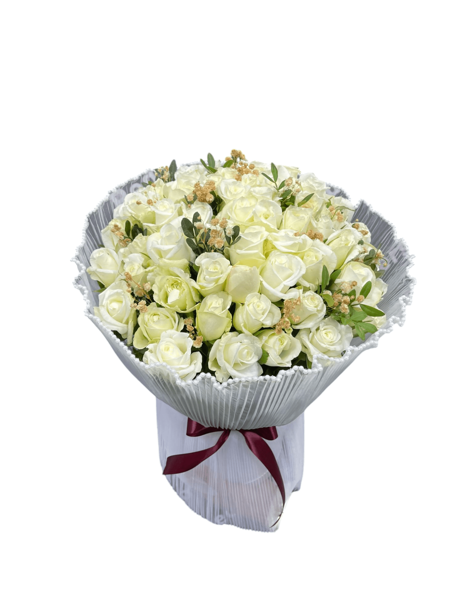 Un bouquet d’une élégance rare où la pureté du blanc rencontre la fraîcheur subtile du vert. Les fleurs immaculées symbolisent la sérénité et la grâce, tandis que de délicates touches de vert apportent une légère note de nature et de renouveau. Une composition raffinée et intemporelle, parfaite pour un mariage, un geste de paix ou simplement pour illuminer un intérieur avec délicatesse.